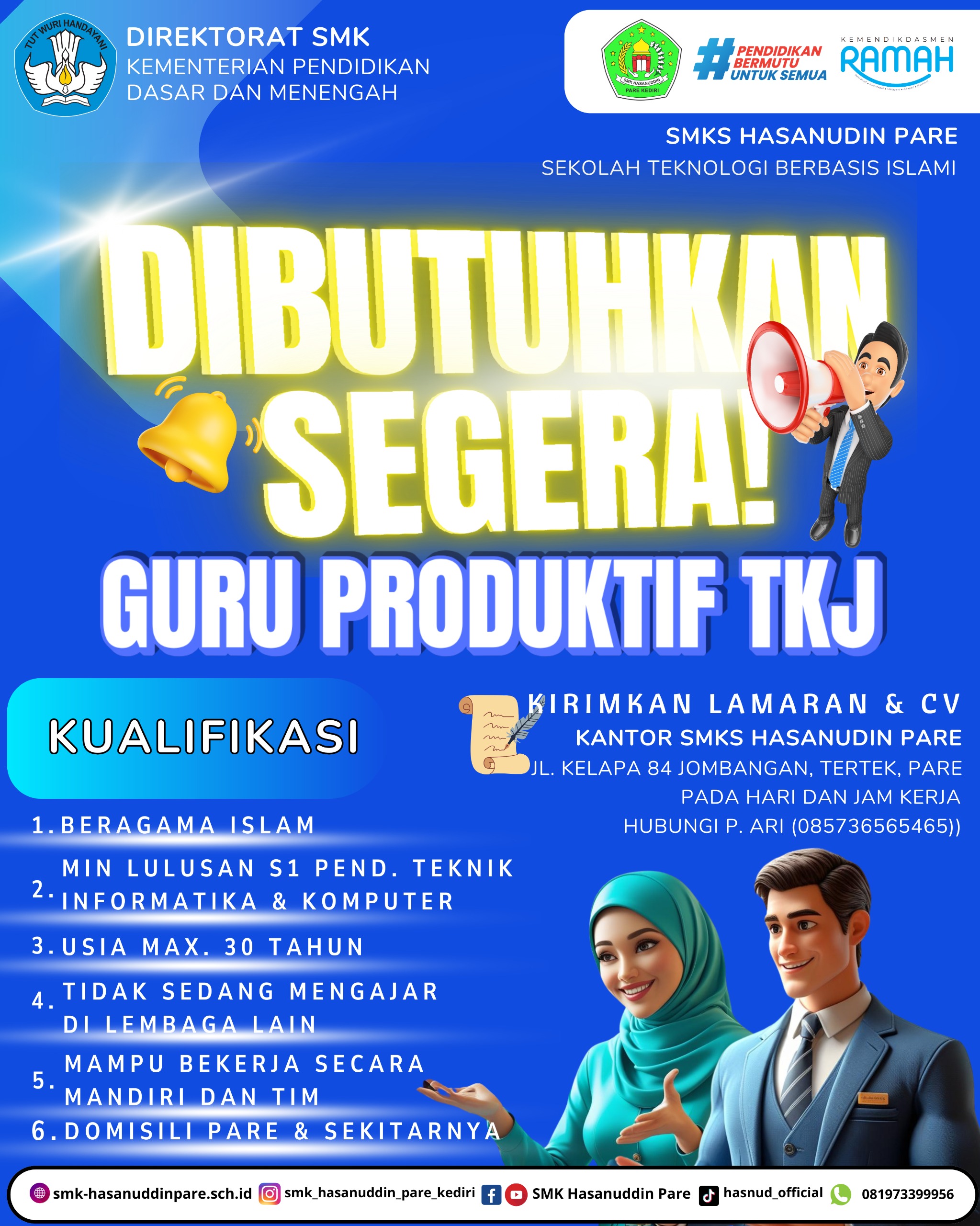 Home » Lowongan Kerja – SMKS Hasanudin Pare Lowongan Kerja – SMKS Hasanudin Pare June 22, 2025 Post Views: 45 Bagikan: Tags Related Post Lowongan Kerja Sofware Engineer Post Views: 65 July 23, 2025 Lowongan Kerja Staff IT Post Views: 54 July 23, 2025 Lowongan Kerja Customer Servis Post Views: 41 July 23, 2025 Lowongan Kerja Teknisi Internet Area Bali Post Views: 74 July 17, 2025 Lowongan Kerja Administrasi SMS Finance Post Views: 78 July 17, 2025